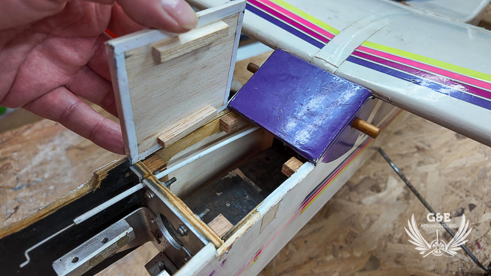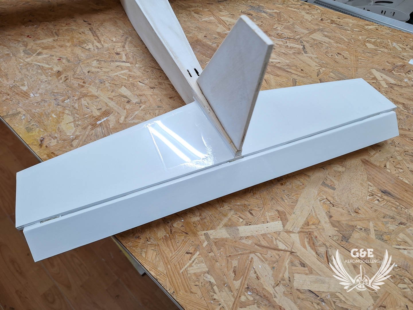 A következő lépésben visszaragasztottam a függőleges és vízszintes vezérsíkokat