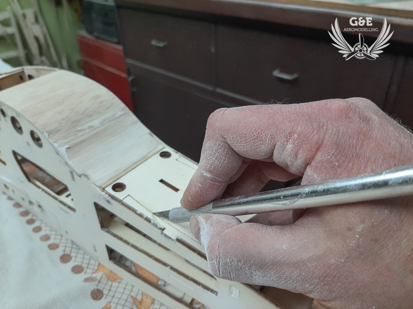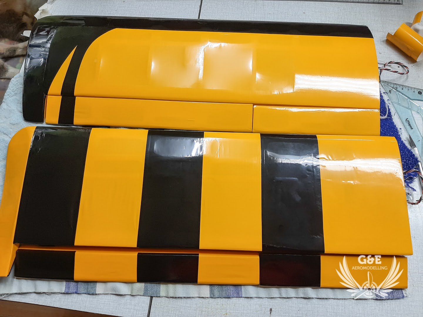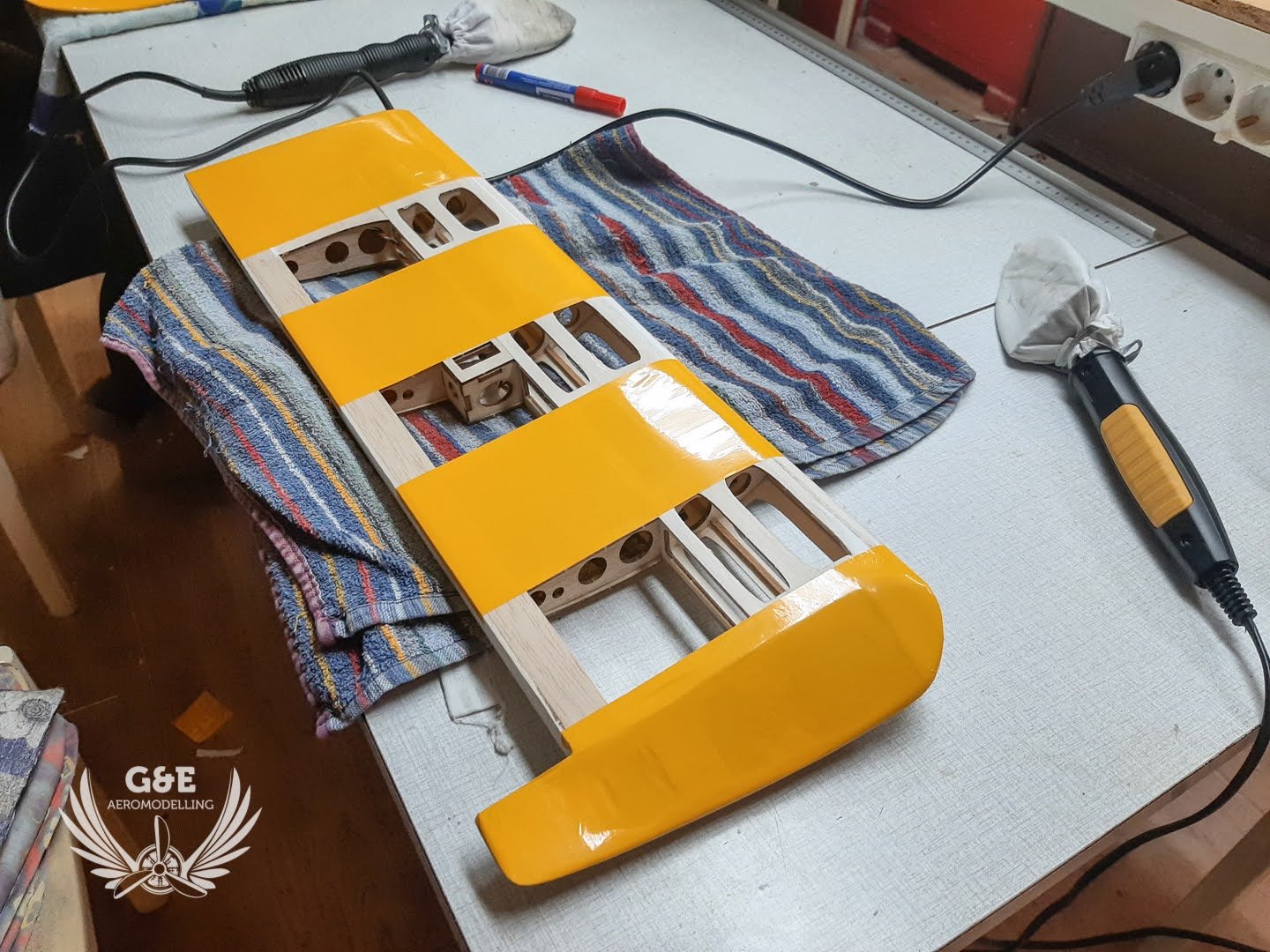 Mivel a magassági és oldalkormányt ragasztószallaggal rögzítettem, le kellett csiszolni a kilépőéleket és belépőéleket a megfelelő szögben