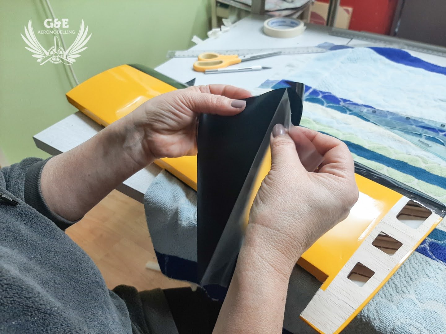 A fóliázást a szárny alsó felületeivel kezdtük