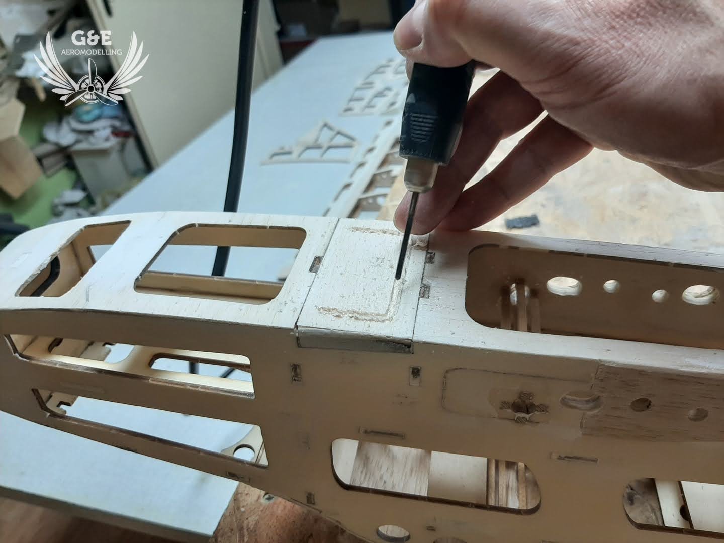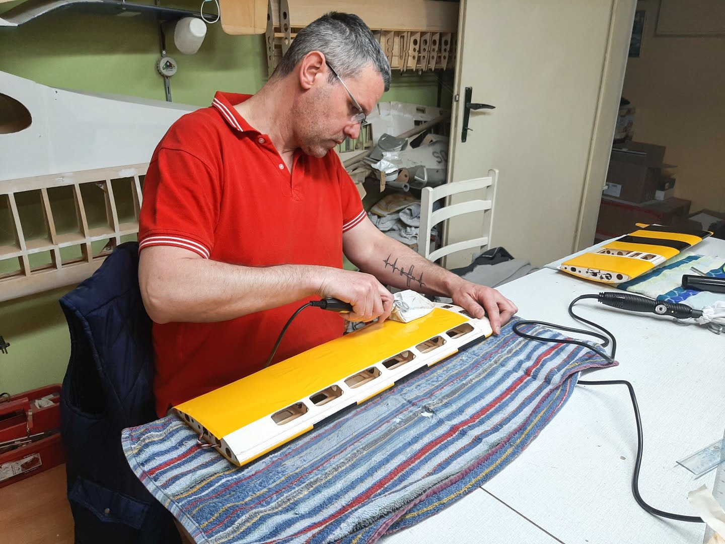 Mivel a magassági és oldalkormányt ragasztószallaggal rögzítettem, le kellett csiszolni a kilépőéleket és belépőéleket a megfelelő szögben