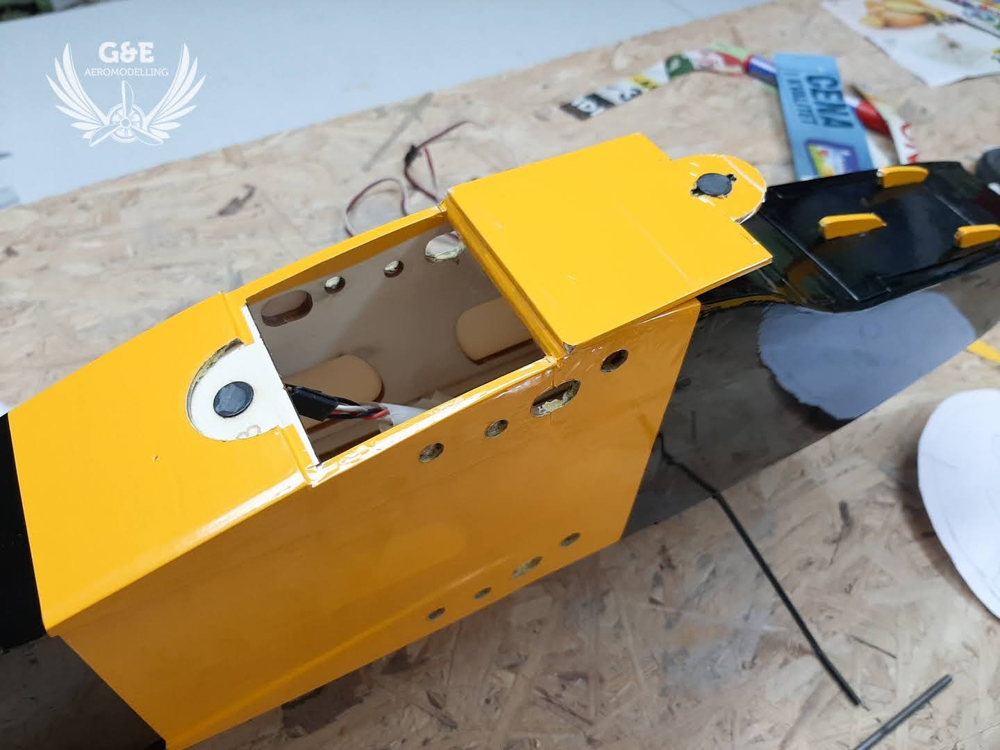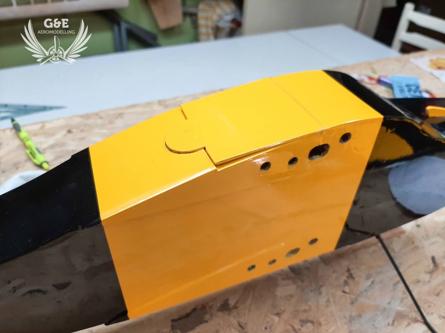 csavarral rögzíthetőre alakítottam az alsó fedelet, mert a szárny áthelyezés után itt lesz hozzáférés a szárnyrögzítő csavarokhoz