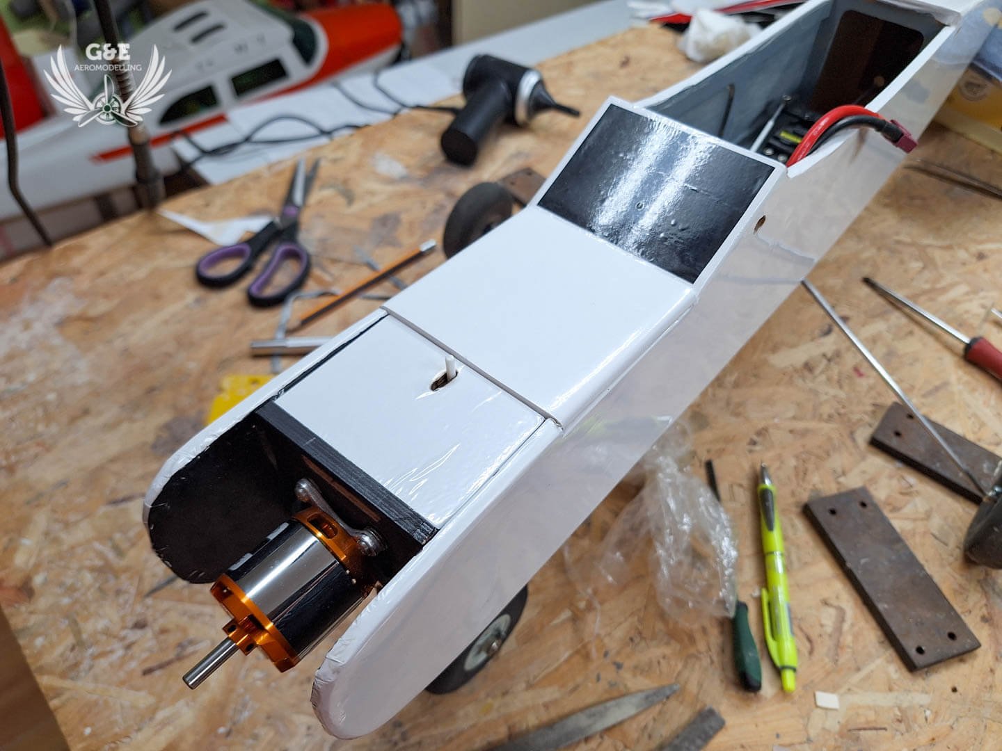 A súlypont beállításához 60g ólom kapott helyet közvetlenül a motor mögött