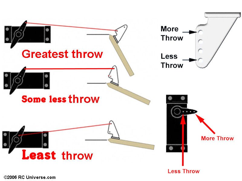 - a szervó karokon van min 3 lyuk, ugyanez igaz a vezérsíkokba épített karokra. Ezekkel kell kicsit játszani. A kép kicsit többet mond el,
