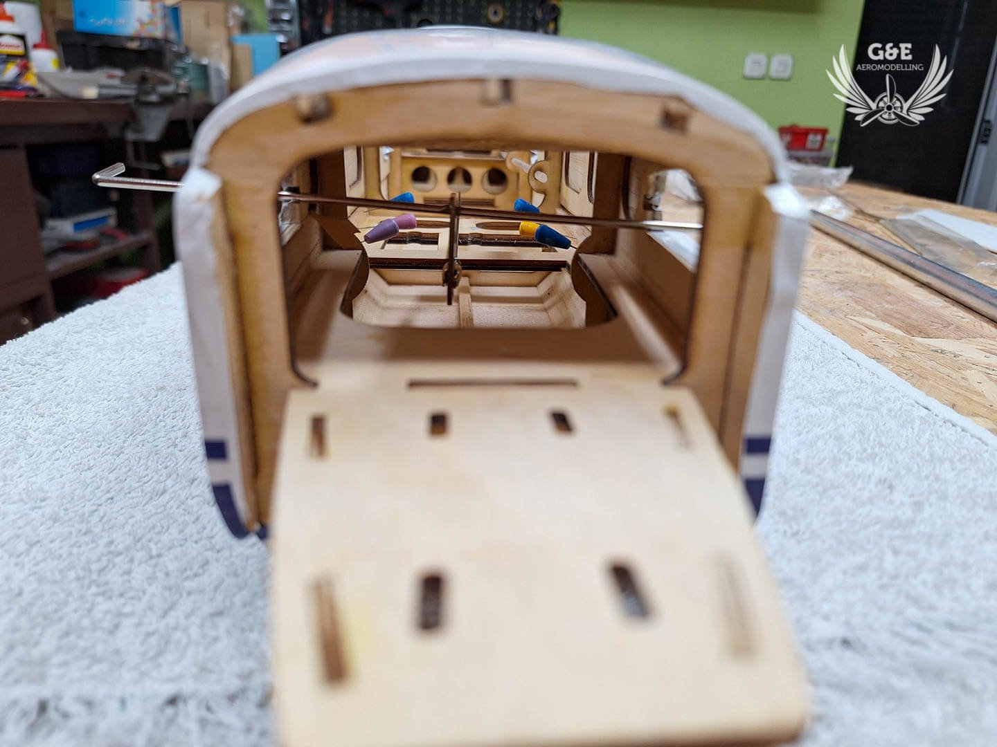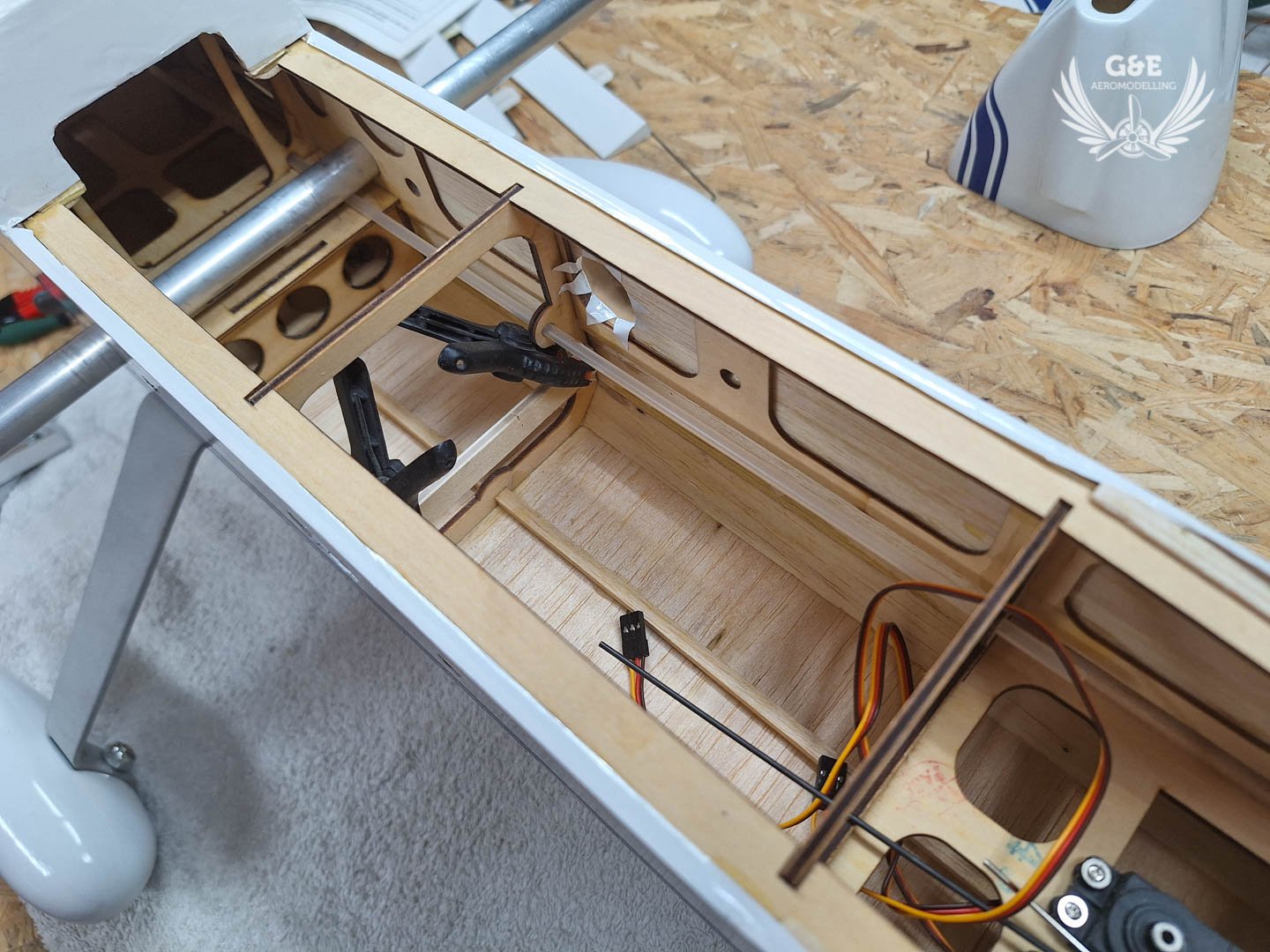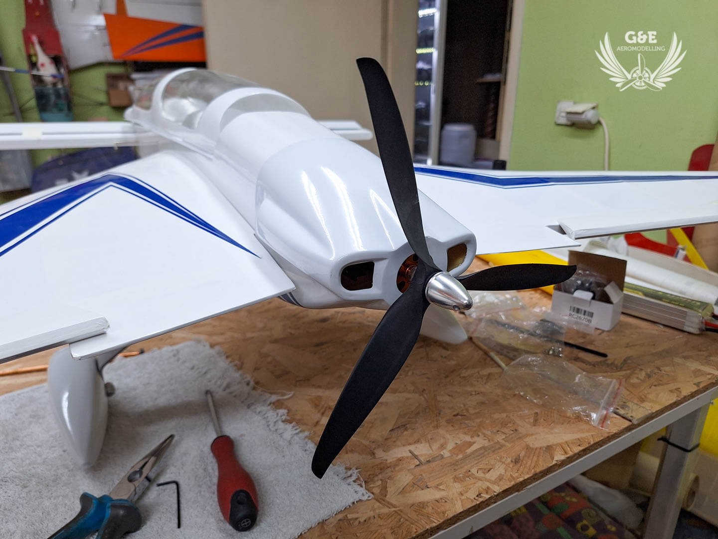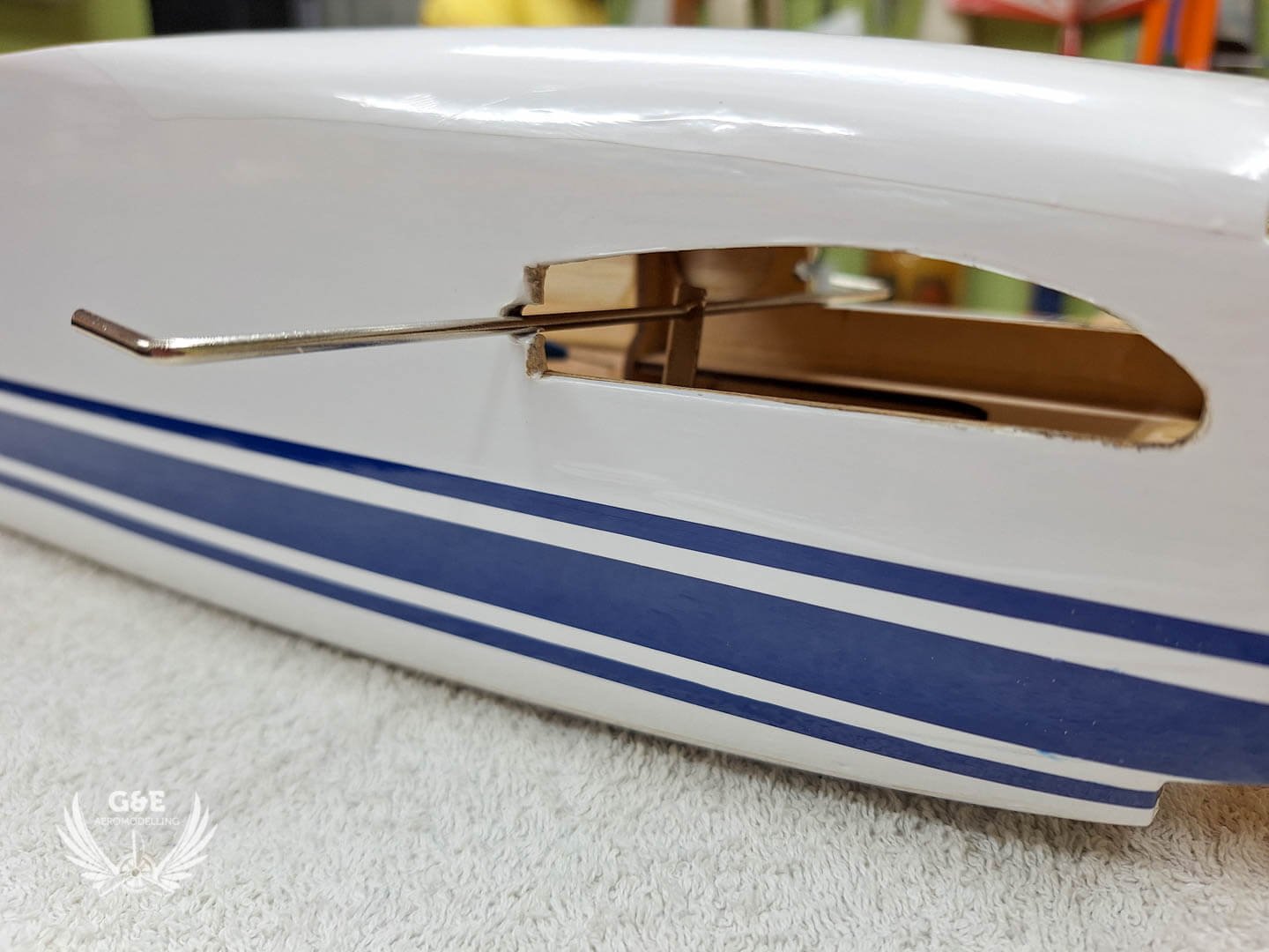 Meglepődtem, hogy az akksi elhelyezésének a törzs középső részébe, nem lett negatív hatása. Sőt, mivel az elektromos motor könnyebb mint a metiles, így a modell orrába sem kell használnom a készletben megtalálható súlyt, ami bőven 150-200g., hanem elég lesz kb 60-80g.