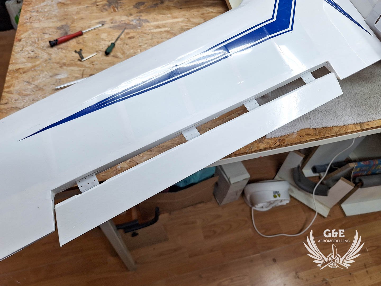 A magassági kormányokba beragasztottam a zsanérokat
