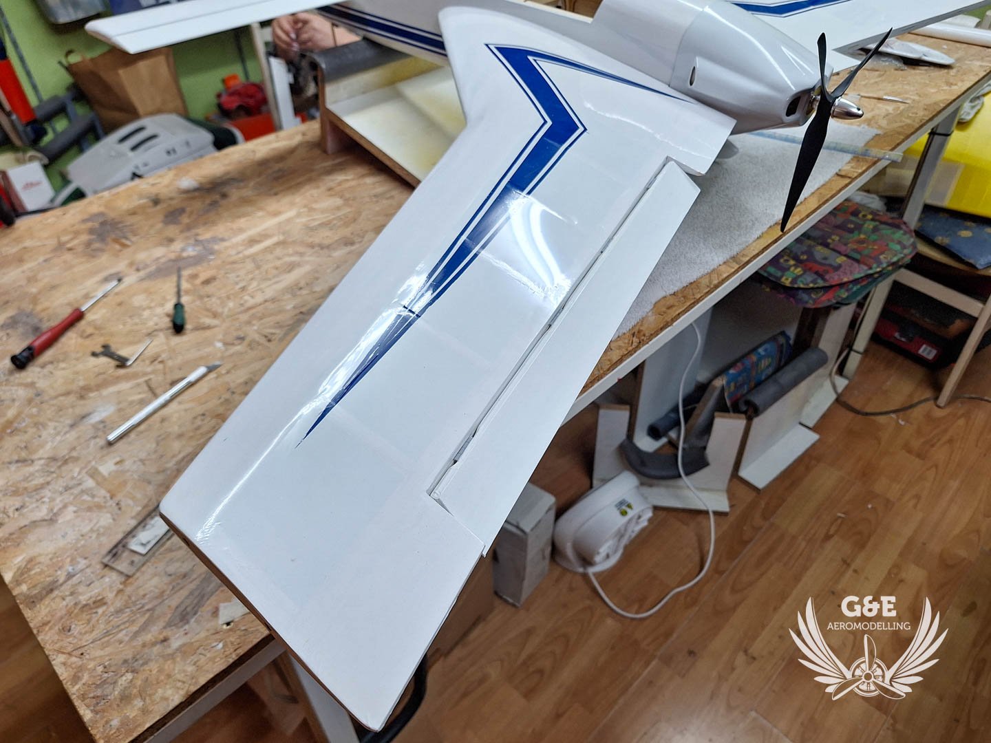 Itt még nincs beragasztva a vízszites vezérsík