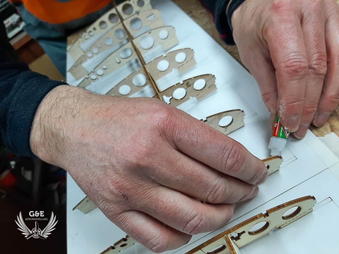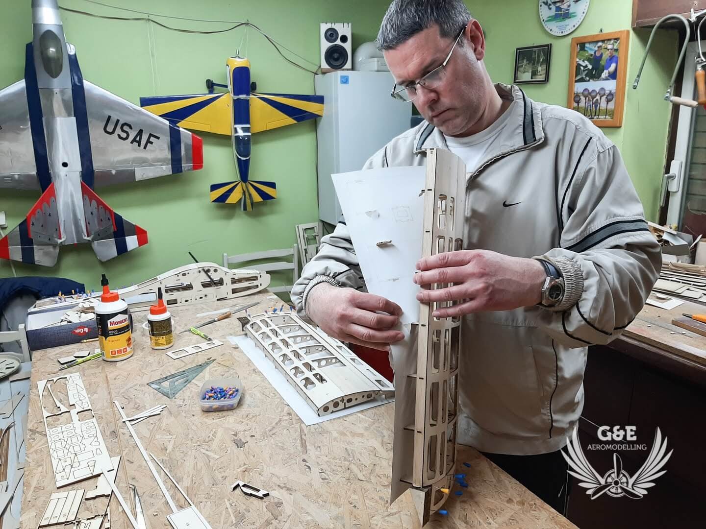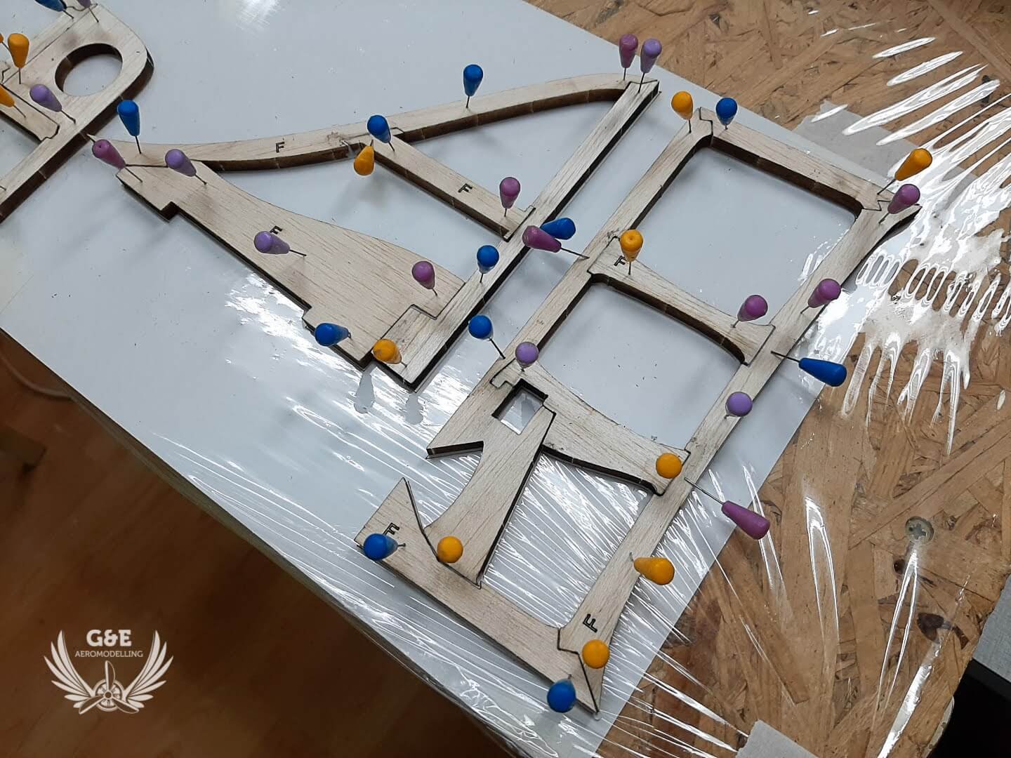 A szárny felszedése után összeraktam és a helyükre ragasztottam a szervókereteket és a szárnyrögzitő anyacsavarokat