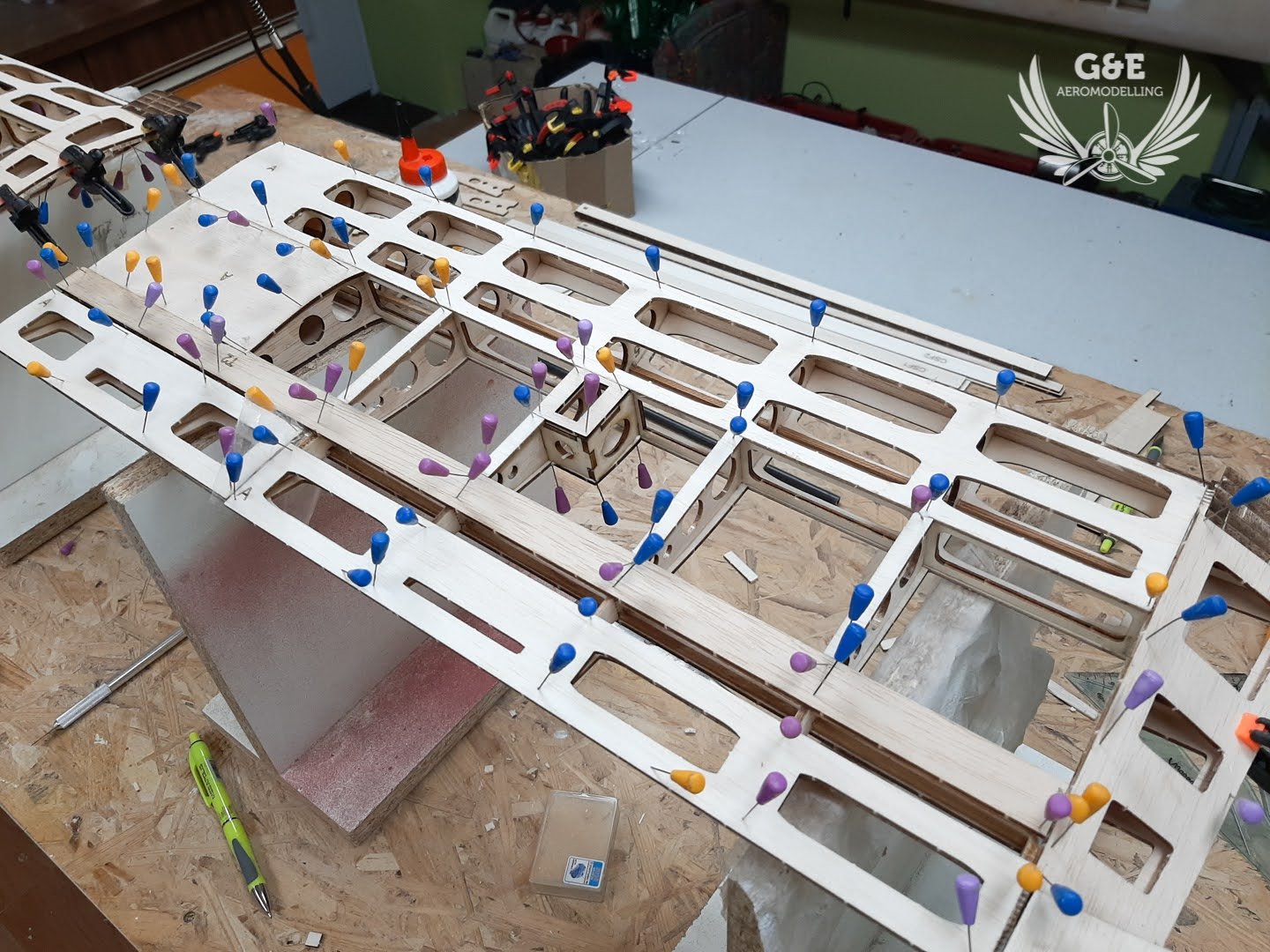 Ha így szeretnétek megoldani, akkor már az első lépéseknél, amikor elkezditek a törzset összeépíteni, ki kell alakítani azt a részt, ahol az alsó szárnyálláskor kerül a cseszterton és a rögzítő csavarok
