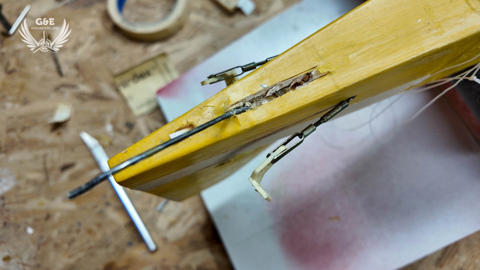 A kilépőél rögzitése sem tetszett, ami csak a bordák végéhez volt hozzáragasztva. A bordák közé balzapálcákat ragasztottam be