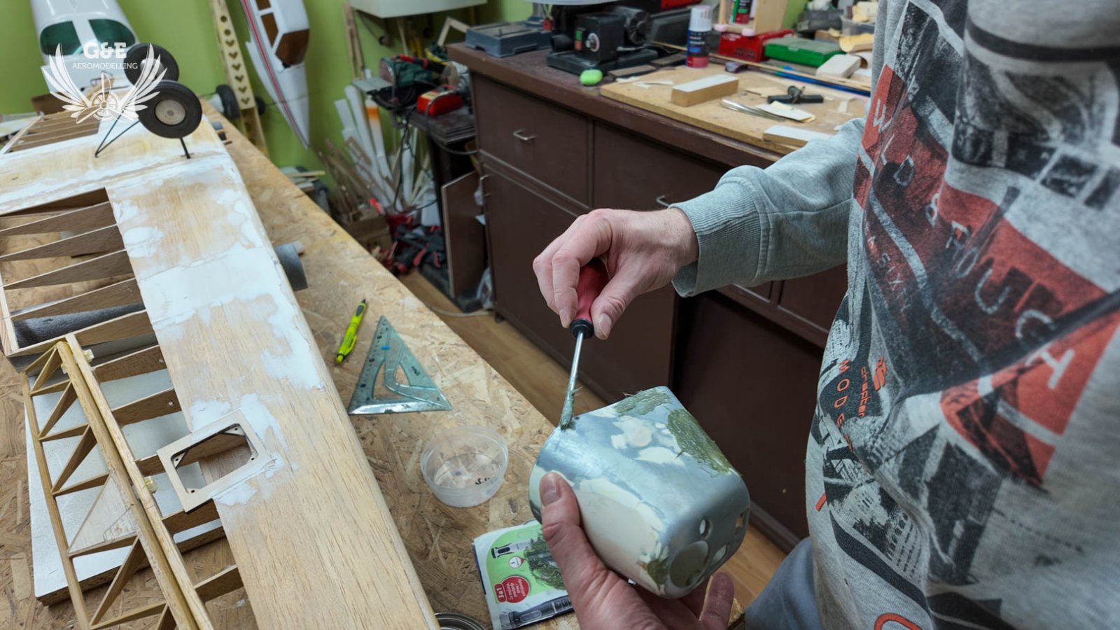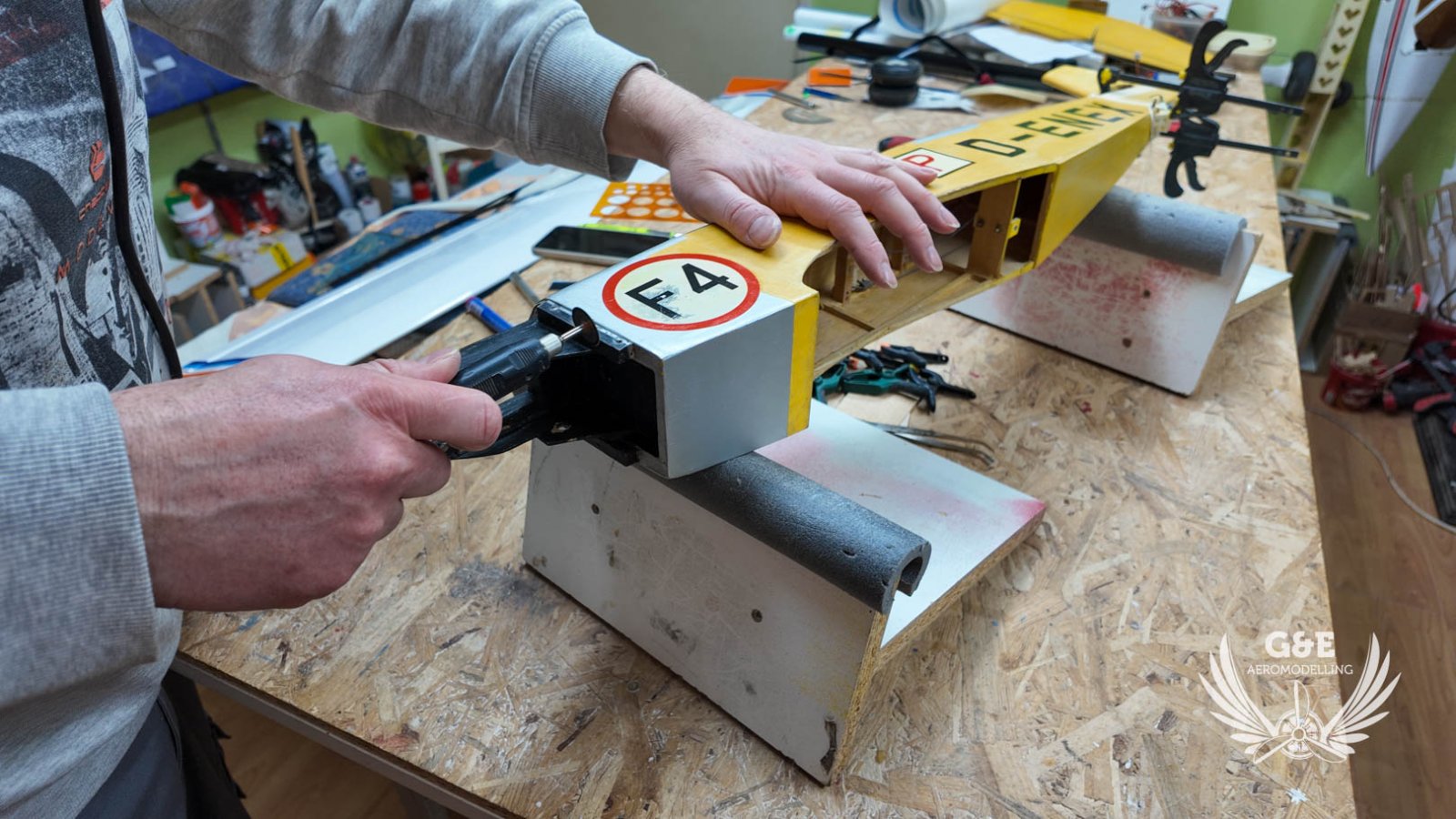 A következő lépésben levágtam a motortartót mert nálam elektromos hajtással fog repülni